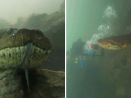 Taucher hat eine unglaubliche Begegnung mit einer riesigen Anakonda in Brasilien