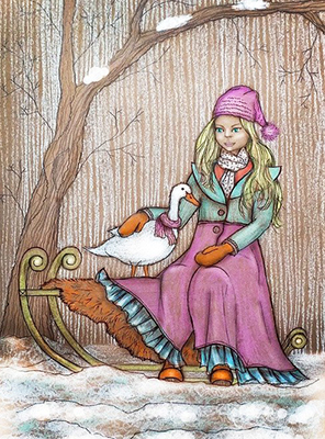 🌷 Bild 1: Das Mädchen im Schnee mit dem Schwan