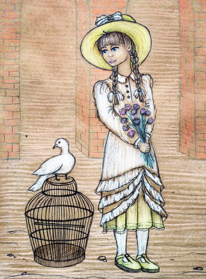 🌼 Bild 2: Das Mädchen mit dem Hut und der weißen Taube
