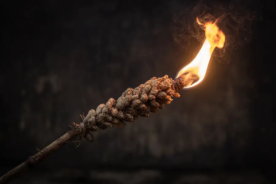 5. Die Spitze anzünden – die Fackel brennt wie eine große Kerze