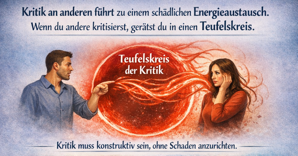 Aus energetischer Sicht verbindet jede intensive Kommunikation zwei Menschen miteinander. Gedanken sind Energie, und Sprache transportiert Schwingungen. Wenn wir Kritik mit Ärger, Ungeduld oder innerer Unruhe äußern, senden wir genau diese Schwingungen aus. Der andere nimmt sie auf – bewusst oder unbewusst. Gleichzeitig bleiben wir selbst in dieser Energie gefangen. So entsteht ein schädlicher Energieaustausch, der sich nicht selten körperlich oder emotional bemerkbar macht.