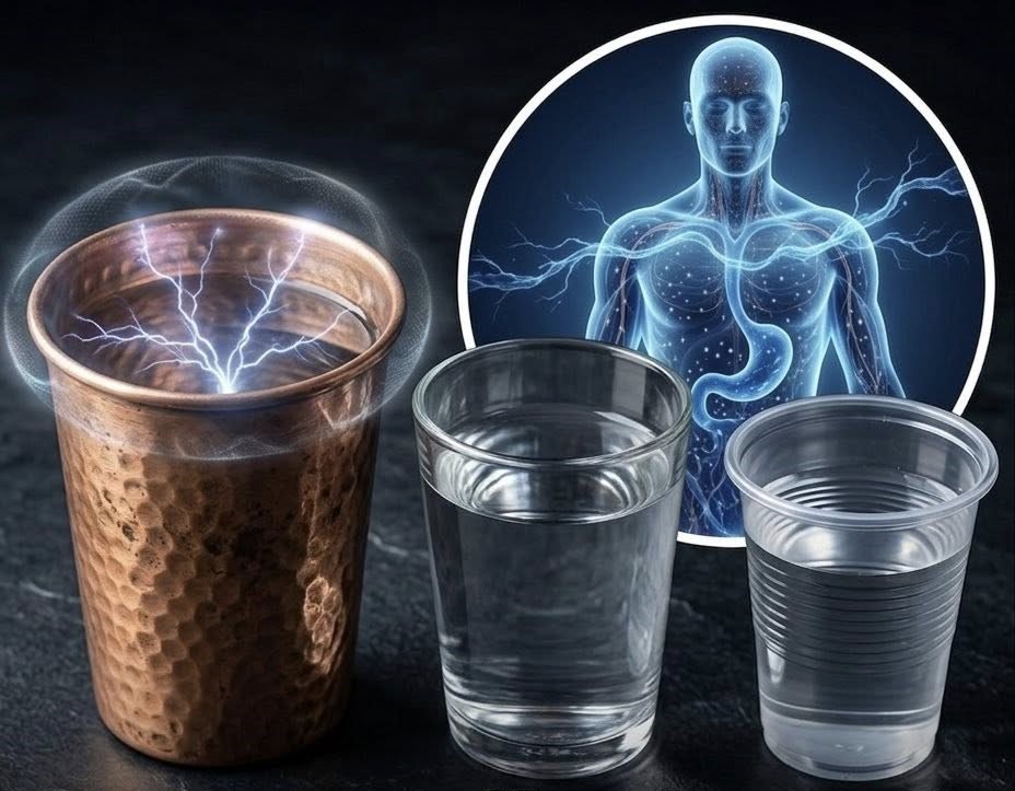 Kupfer besitzt eine natürliche Fähigkeit, Mikroorganismen zu hemmen oder abzutöten – ein Phänomen, das als oligodynamischer Effekt bekannt ist. Wenn Wasser mehrere Stunden (typischerweise über Nacht) in einem Kupfergefäß steht, gehen winzige Mengen an Kupferionen ins Wasser über.